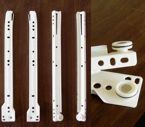 導(dǎo)軌:導(dǎo)軌分為二節(jié)軌、三節(jié)軌兩種,選擇時(shí)外表油漆和電鍍的光亮度,承重輪的間隙和強(qiáng)性決定了抽屜開(kāi)合的靈活和噪音,應(yīng)挑選耐磨及轉(zhuǎn)動(dòng)均勻的承重輪。好的導(dǎo)軌很重要?,F(xiàn)在很多家庭裝修中,考慮使用滑動(dòng)門(mén),我們也順便說(shuō)一下應(yīng)該如何選擇滑動(dòng)門(mén)五金。高質(zhì)量的滑動(dòng)門(mén)五金產(chǎn)品,主要體現(xiàn)在它的滑輪設(shè)計(jì)、制造水平以及與它相互配套的軌道設(shè)計(jì)上。滑動(dòng)門(mén)所使用的軸承必須是多層復(fù)合軸承,外層為耐磨尼龍?zhí)祝@種尼龍的表面必須很光滑,沒(méi)有棱狀凸起,并且內(nèi)層滾珠托架同樣的道理。