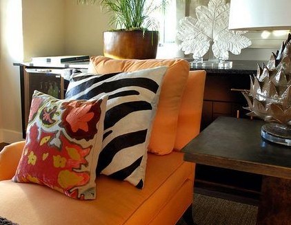 抱枕也可以是簡單又實惠的裝潢喔,讓客廳的質(zhì)感從布面換成皮面,從素面換成色彩斑瀾的花色,熱鬧一下。