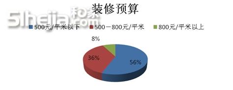 以上數(shù)據(jù)說明大多數(shù)人大部分人還是愿意選擇價(jià)格實(shí)惠的裝修預(yù)算。既然價(jià)格實(shí)惠,相對(duì)來說不管是在設(shè)計(jì)和搭配上都是以簡單大方為主,同時(shí)也能反映出這類的裝修者都比較心儀簡約風(fēng)格,不僅價(jià)格適中而且舒適大方。也是目前大多數(shù)裝修者都比較喜歡的裝修風(fēng)格之一。500—800元/平米的裝修檔次已經(jīng)達(dá)到富裕型了。硬裝和軟裝都比較有講究。這類檔次的裝修者是處于消費(fèi)偏向中等水平的消費(fèi)。超過800元/平米的也只占據(jù)了一小部分。然而這部分人可以選擇一些比較高檔的設(shè)計(jì),比如簡歐、中式等設(shè)計(jì)風(fēng)格。不管選擇那種檔次的裝修預(yù)算,都要量體裁衣,合理分配。做自己滿意的裝修。