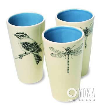 美國佛蒙特州的藝術(shù)家Laura Zindel將一項(xiàng)18世紀(jì)的印刷術(shù)進(jìn)行了改良,然后把她自己的鉛筆畫大作結(jié)結(jié)實(shí)實(shí)地印在了瓷杯和玻璃杯上,最有趣的是她選擇的內(nèi)容全部是帶翅膀的生物,比如蜻蜓、麻雀。 約¥280/只