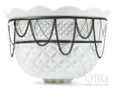 美國布魯克林的設(shè)計(jì)師Sarah Cihat與鐵藝師Michael Miller合作,用泛著冷金屬色調(diào)的粗銅和黃銅給她的Dirt系列陶藝品配上了一條“項(xiàng)鏈”。金屬的冷艷和瓷器的溫潤形成了鮮明的反差。圖中便是Dirt系列里的一只瓷碗。 約¥4500/套