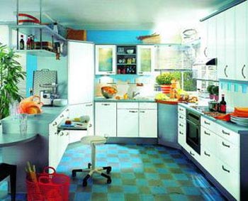 得意之處:客廳的面漆選擇的是藍色,為了過渡自然,也增加整體的亮度,因此櫥柜選擇了白色與之搭配,使用后發(fā)現(xiàn)不僅好看,而且非常禁臟。藍色涂料自然過渡到櫥柜的位置,只在水槽和灶具附近加鋪了白色瓷磚,省了不少花費。