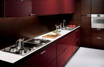 白色是簡約主義的一種永恒顏色,簡約廚房中運用白色,可以把看似狹小的空間以一種透視的效果達成縱伸感。同樣黑色也是簡約廚房的一個常用色,但黑色由于顏色過深,所以在廚房中很少會有大面積、整體的黑色,而是偏向于時下非常流行的黑胡桃木色為代表的深褐色,作為一種點綴色出現(xiàn)。