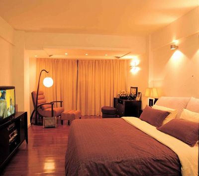 專家建議:保持床正上方屋頂?shù)目諘纾诖策吺褂霉饩€柔和的落地?zé)艋蚺_燈。