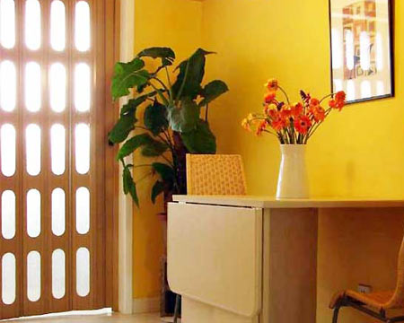 即一開門就見到綠色植物,生趣盎然,又可收養(yǎng)眼明目之功效。