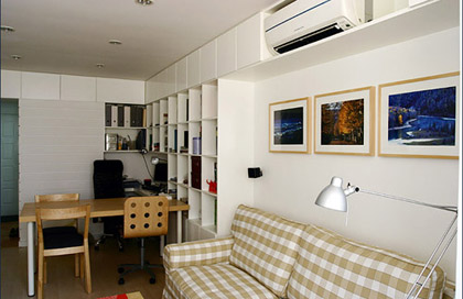 打掉隔墻(非承重墻),以具有儲藏功能的收納柜來分隔空間。