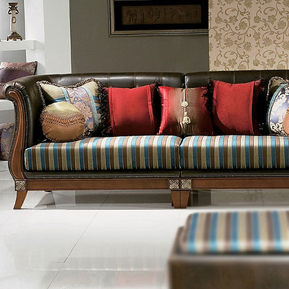 (5)織地:靠墊用料的織地有提花、條紋、方格、隱條、暗花、影條、多臂格、燈芯條、素色、平紋、斜紋、緞紋,花飾紗、泡泡紗,以及獨立整體圖案,多方連續(xù)圖案,印花、照相影印等。