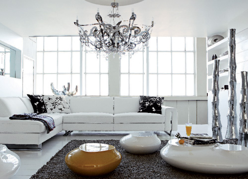 沙發(fā)和廳柜的造型難以推陳出新,裝飾派喜歡用茶幾來充當(dāng)空間的裝飾元素。充滿想象力的外形、閃亮的材質(zhì),令茶幾成為客廳里絕對的主角。