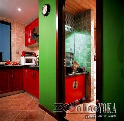 身為設(shè)計(jì)師的郭筱玉認(rèn)為,自己的家是最佳的實(shí)驗(yàn)室,客戶那里不能做的,自己都可以嘗試,想要家具有視覺(jué)有沖擊力,又不想使用慣常的單色重涂,不如就來(lái)個(gè)徹底的沖撞——紅與綠,大俗的色彩,卻又是最民族的色彩,包含了太多的色彩語(yǔ)匯與寓意,沒(méi)有比它們更適合的色彩了。一路傾瀉下來(lái),處處濃墨重彩。門廊、客廳、臥室,甚至連衛(wèi)生間都不放過(guò),紅色依綠色而明媚,綠色依紅色而濃郁,到處閃亮青春的熾熱與無(wú)忌。沒(méi)有摻雜任何的灰調(diào),是最徹底的紅與綠的色彩搭配,但設(shè)計(jì)師熟稔地把握著色塊的體量關(guān)系,不完全放縱,才能完全掌控空間對(duì)于自己的服務(wù)。這是一份“危險(xiǎn)”的色彩試卷,郭筱玉卻答得精彩。