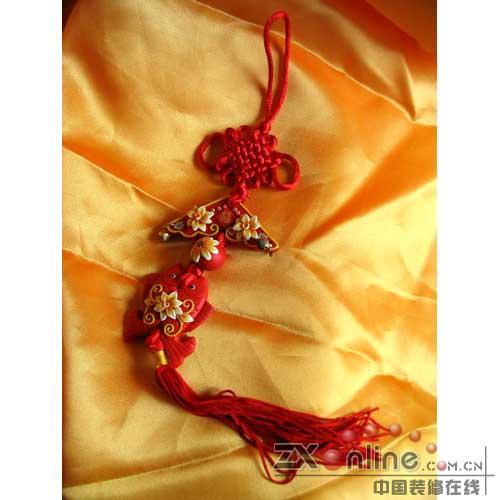 人們總用魚來預示“吉慶有余”的未來,選擇一串紅紅火火的雙魚掛飾懸掛在床頭或案角,精致的鯉魚扣和亮閃閃的金絲線上原本就很漂亮的中國結更加增添喜慶和熱鬧。如果你有興趣,不妨找來一串金色或紅色的同心結,用線把它們固定在門楣或門框上,這樣會給每一位進入房間的客人帶來不少新春的喜氣。而在魚狀的中國結下的那一方空間,常因為這零星的一點“魚紅”而傳遞出意想不到的好心情。
