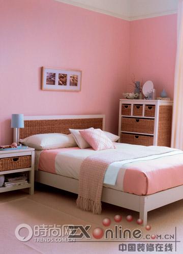 概要: 巧妙與鮮明粉紅色的墻面定下整體基調(diào),給人以朦朧的浪漫感覺(jué)。CrucialTrading的灰白色羊毛地毯,以及Harlequin白色窗簾與粉紅色過(guò)度十分自然。白色的床邊小桌和柜子仍然帶藤制抽屜,桌上放有藍(lán)色托盤(pán)和藍(lán)色臺(tái)燈,是整體色調(diào)中活潑的一筆,柜子上飾以小圓鏡、藍(lán)色花瓶和小花枝。