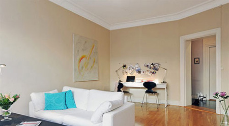 空間不大,所以裝修中選用了白色為主,奶茶色墻壁,白色系的家具,柚木色的地板,使整個(gè)空間迅速拉升放大。