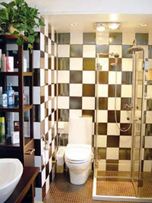 其次要靠花色瓷磚的點綴 ,我們常??吹綐影彘g美侖美煥的效果往往是靠幾塊創(chuàng)意新穎、氣質(zhì)不俗的花磚畫龍點睛。