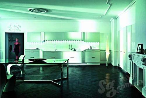 現(xiàn)在是科技時代,如果不能在新家中體現(xiàn)科技的力量就太遺憾了,更何況它還能給生活帶來便利。2008~2009年,最流行的科技手段是幫助拓展家庭的娛樂功能,這集中表現(xiàn)在廚房和衛(wèi)浴上,比如蘋果MP3可方便地與櫥柜音箱連接,這個改變強調(diào)廚房不再是工作空間。