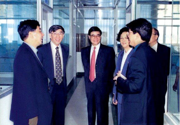 與清華大學(xué)校長王大中院士(左起第二位)視察公司