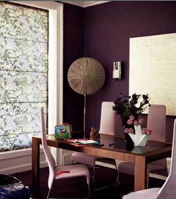 圖為 餐廳的墻面被涂刷成深李子色