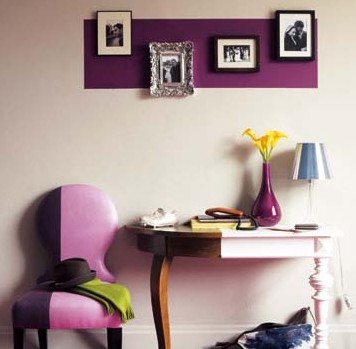 對于原本是米白色和木色系為主的玄關(guān)處,可以在墻面、家具和地面上直接加入漿果色系的顏色,就能馬上獲得全新視覺效果。邊桌上紫色的花瓶必不可少,家居色彩運(yùn)用的最高境界就是在所有擺設(shè)之間找到平衡。
