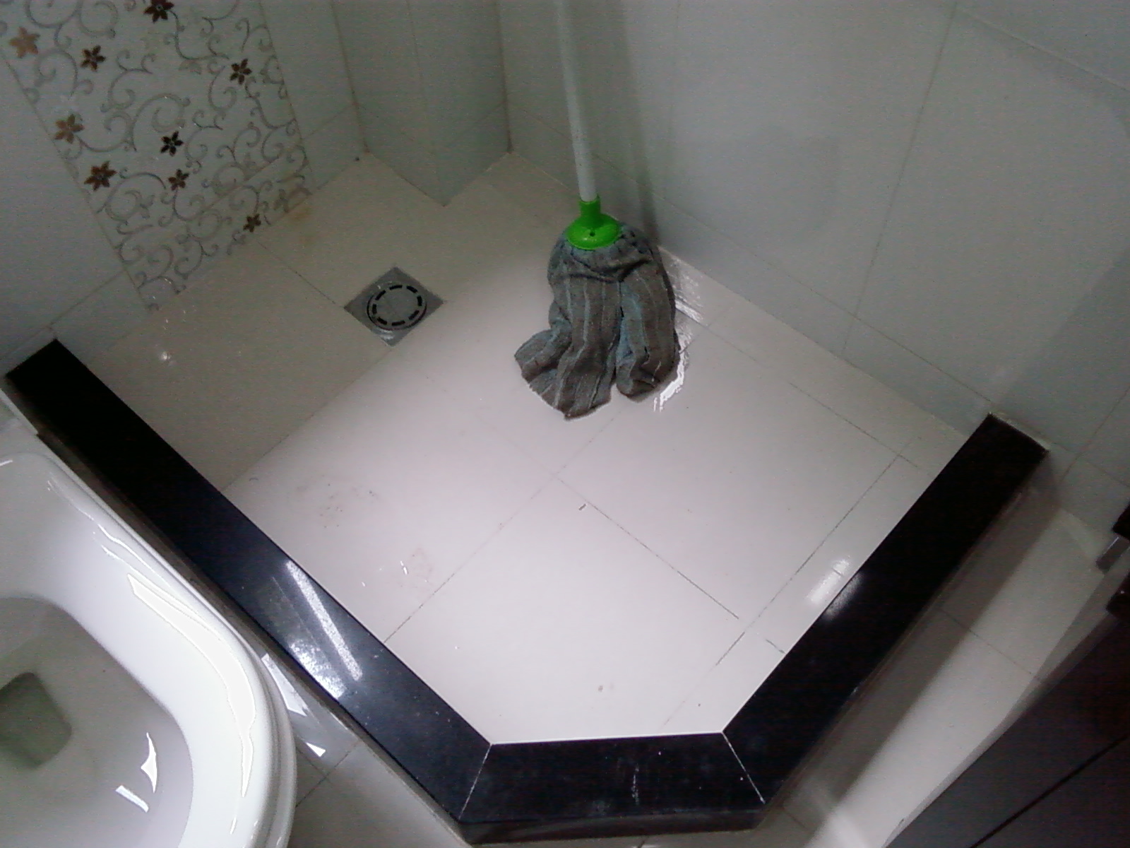 配合浴簾的擋水條最適合的材料是天然石。建材市場加工石材的一般都能做。擋水條用黑色石材的最多,看起來很雅致的感覺,而且黑色配任何顏色的地磚一般都不會出錯。