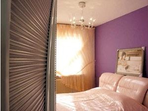 紅色紫色的效果不錯,不過在后期搭配上還需要做些工作:長時間面對紅色容易產(chǎn)生視覺疲勞,所以我家客廳的紅墻是在客廳沙發(fā)的后面;廚房是開放式的,跟餐廳、客廳成一直線,為了達到統(tǒng)一,櫥柜、餐桌也用了紅色;玄關(guān),因為空間有限,沒用屏風(fēng),而是用了一串一串的水晶球,燈光照射下,有一種夢幻的感覺。陽臺是我比較喜歡的,有落地的一整塊弧形玻璃窗,采光非常好——在北方寒冷的冬天,陽光是非常重要的——我們把它改造成了一個地面是玻璃臺階的陽光房,玻璃上鋪一塊羊毛地毯,再放幾個靠背枕,就可以在那里舒舒服服地曬太陽看書了;臥室用了紫色,代表著神秘、浪漫,另一間臥室現(xiàn)在身兼數(shù)職,即是更衣室,又是書房,還是客房。