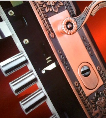 ?。?)鎖具檢查:合格的防盜門一般采用經(jīng)公安部門檢測合格的防盜專用鎖,同時(shí),在鎖具處應(yīng)有3.0mm以上厚度的鋼板進(jìn)行保護(hù)?,F(xiàn)防盜專用鎖有許多是多方位鎖具,其優(yōu)點(diǎn)是不僅門鎖鎖定,上下橫桿都可插入鎖定,對門加以固定。大大增加了門的防撬性能。國家公安部頒發(fā)的《GA/T73—94機(jī)械防盜鎖》中明確規(guī)定,機(jī)械盜賊防盜門鎖分為普通防護(hù)級別和高級級別,以A級和B級來表示。A級鎖是指防破壞性開啟時(shí)間不少于15分鐘、防技術(shù)性開啟時(shí)間不少于1分鐘的鎖,B級鎖是指防破壞性開啟時(shí)間不少于30分鐘、防技術(shù)性開啟時(shí)間不少于5分鐘(防技術(shù)開啟是指抵抗鎖具專業(yè)技術(shù)人員使用特殊工具運(yùn)用操作手法打開鎖具的能力)的鎖。并且在同等情形下,B級防盜鎖的安全性能是A級鎖的5倍。