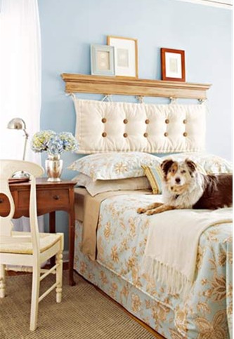 家居賣場(chǎng)會(huì)有耐磨的彩條紋掛毯,既可當(dāng)墊子鋪在沙發(fā)上也可鋪在地上當(dāng)腳墊,我們可以開(kāi)發(fā)它的全新用途。挑選一塊比床頭板稍窄一些的掛毯直接搭在床頭上,兩邊分別用窗簾鉤夾將毯子固定在床柱上,并用絲帶系出蝴蝶結(jié)。一個(gè)粗獷中帶點(diǎn)溫馨感的新床頭就誕生了。
