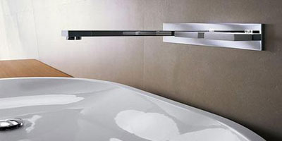 如果浴室里的面盆龍頭選擇入墻式的,則不需要臺(tái)面,可直接安裝在墻上。安裝這種龍頭,要考慮浴室的上下水管線設(shè)置。不過有一利必有一弊,入墻式龍頭會(huì)占用一定的墻面面積。
