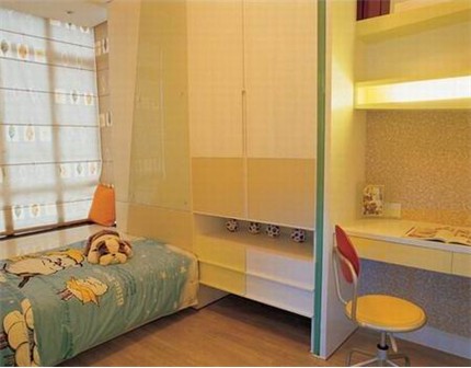 另外,創(chuàng)造出足夠的儲藏空間也是家長千萬不能忽略的。孩子在成長時期發(fā)展很快,每個時期都有很多東西,收納空間就顯得尤為重要。柜子自然必不可少,但在兒童房內最好不要把柜子做成死的墻面柜,固定的墻面柜也許一時能容納很多東西,但不利于房間格局的調整。兒童組合床是最為合適的,床下的儲藏柜可以用來收納玩具、雜物,既節(jié)省空間,又很便捷。