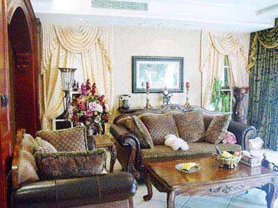 這是個歐式古典的小客廳,沙發(fā)區(qū)由一個3人沙發(fā)和兩個椅子構成,非但不是成套的,連顏色也不相同,但是給人的感覺非常舒服。