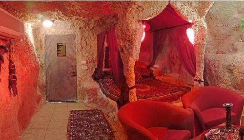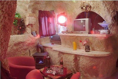 看這組洞房設(shè)計創(chuàng)意著實讓人聯(lián)想到了山頂洞人的居住,創(chuàng)意十足: