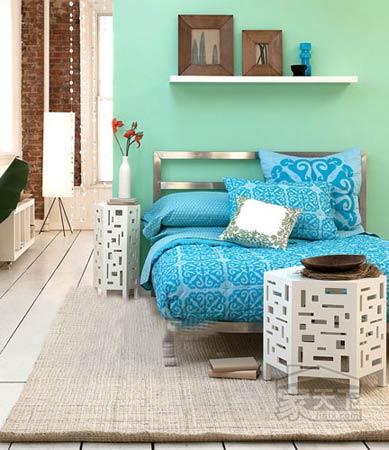 一成不變的采用同一顏色,感覺太單調(diào),在客廳,設(shè)計師巧妙的運用深淺不一的藍(lán),來表現(xiàn)“海洋”主題,此外,設(shè)計師也盡量采用波浪線條,來加強視覺效果!