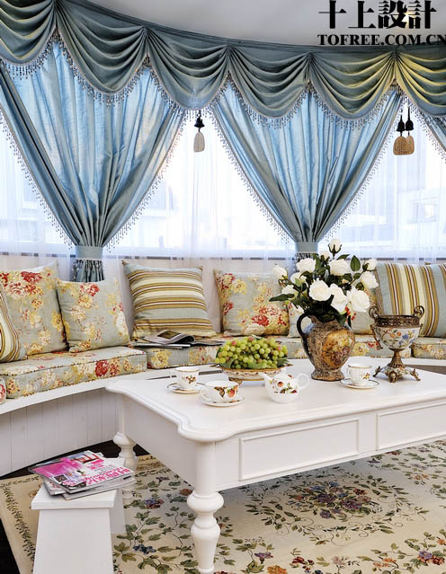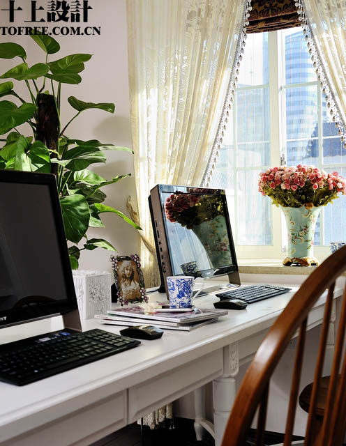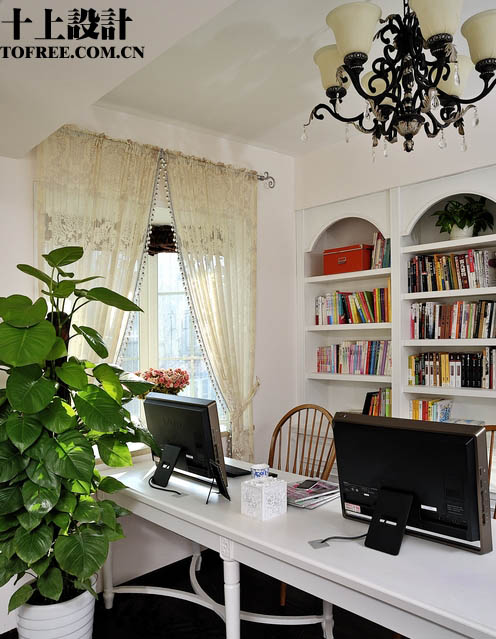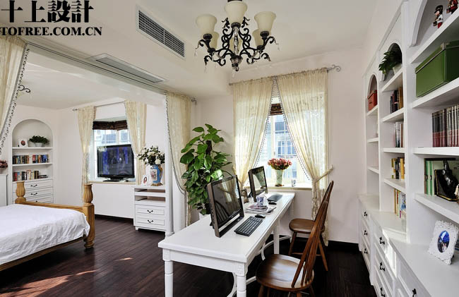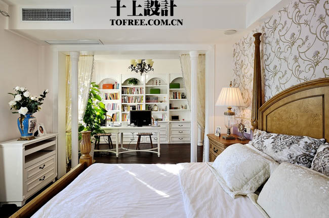 臥和主臥書房的隔斷采用小羅馬柱和紗簾的隔斷
