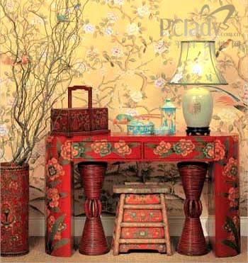 且看漢藏結合在現代藏式家具中的體現:從作畫手法看,傳統的藏式家具采用礦物原料,手工作畫。從圖案上看,傳統藏式家具的圖案多是宗教題材,現在,圖案融入了不少山水、花鳥等內地人民喜好的圖案,甚至,還有反映現實生活題材的,比如青藏鐵路建設的圖案也開始出現在個別藏式家具中。