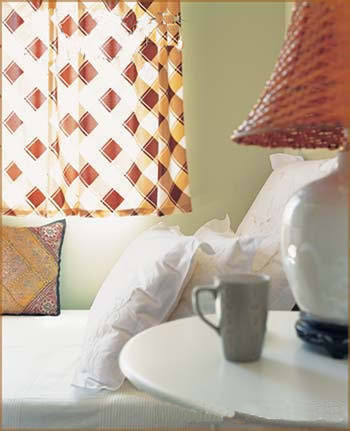 臥室墻壁刷了豆綠色,再將床上用品換成白色的,就已經(jīng)很寧?kù)o了。不過這樣的話房間缺少層次和韻味,所以搭配上棕色配飾。燈罩換成藤編的,窗簾也換成棕色黃色白色相間的格紋。白色床品5件套90元官園小商品批發(fā)市場(chǎng)。 上海裝潢網(wǎng)