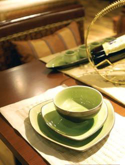 這些餐具妙在一個(gè)“淡”字。春天的綠不是濃綠,而是淡綠,不像夏天那樣熱烈奔放,而是含蓄雋永,是萬(wàn)物始發(fā)生的綠,是嫩嫩的,不敢輕易觸碰的綠。以此觀之,這款餐具得春綠之三昧矣。