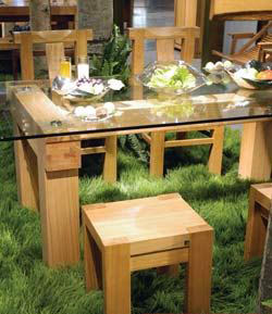 圖中這款餐桌椅由實(shí)木制成,色彩也沒(méi)有用明黃或者綠色等富有跳躍感的顏色,但自有一種來(lái)自森林原汁原味的感覺(jué)。