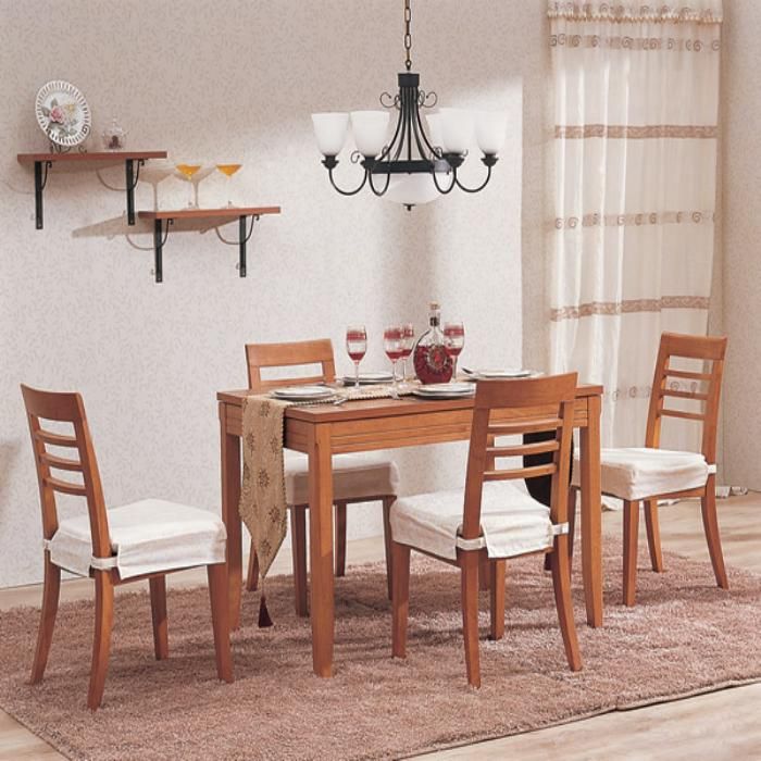 吊燈的組合形式多樣,單盞、三個一排、多個小燈嵌在玻璃板上的,還有由多個燈球排列而成的,體積大小各異。在選擇餐廳吊燈時,就要根據(jù)餐桌的尺寸來確定燈具的大小。餐桌較長,宜選用一排由多個小吊燈組成的款式,而且每個小燈分別由開關(guān)控制,這樣就可以依用餐需要開啟相應(yīng)的吊燈盞數(shù)了。如果是折疊式餐桌,那就可以選擇可伸縮的不銹鋼圓形吊燈來隨時依需要擴大光照空間。而單盞吊燈或風鈴形的吊燈就比較適合與方形餐桌或圓形餐桌搭配了。