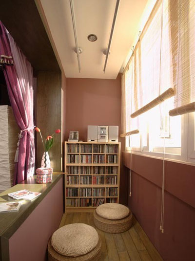 把原有的門連窗,陽臺面積就能很好的利用起來了。稍稍動一下,這里就成為室內(nèi)空間的一個有機組成部分,用一種戶外使用的防腐木,做成一個用地臺進(jìn)行區(qū)分的小小休閑區(qū),為了日后生活的方便,軟裝飾只選用一小部分,方便日后生活改動。