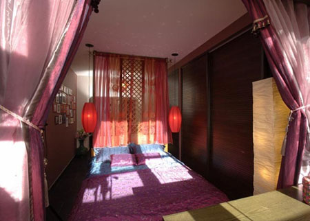 臥室是夫妻兩人的私密空間,如何做到空間功能的區(qū)分同時又不影響整體美觀呢。這里設(shè)計師有一個設(shè)計亮點,就是這個半通透的隔斷。在小空間住宅的室內(nèi)設(shè)計當(dāng)中,儲物空間是必不可少且最 難安排的。設(shè)計師為了能充分利用空間,且讓小小的空間顯得更為整潔,就在臥室、起居室及餐廳的一側(cè),整體規(guī)劃出一組巨大的儲物柜,來滿足業(yè)主的存儲需求。