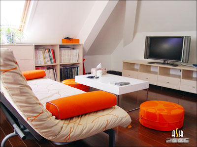 閣樓裝修最重要的環(huán)節(jié)是隔熱,由于閣樓位于頂層,受陽光直射,溫度較高,解決辦法是加上隔熱頂或者鋪上隔熱層,由于室內(nèi)的層高較高,隨后可在室內(nèi)做20公分的隔熱層吊頂,防止閣樓變成“蒸籠”。此外,預(yù)埋電路時必須考慮周全,比如預(yù)留空調(diào)線等問題,因為閣樓的改裝會更麻煩。另外,由于閣樓屋頂多為傾斜狀,所以利用好空間也是重點,比如墻與地板交界的三角區(qū)域,可以放上開放式隔架,做成儲物空間等。