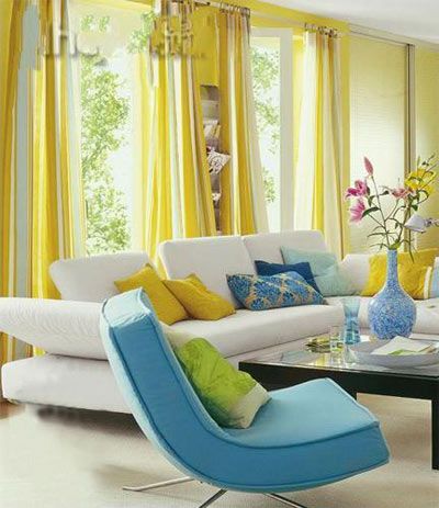 CHOOSE1 明黃色條紋布藝窗簾+低姿態(tài)沙發(fā) 簡潔造型成就明快氛圍