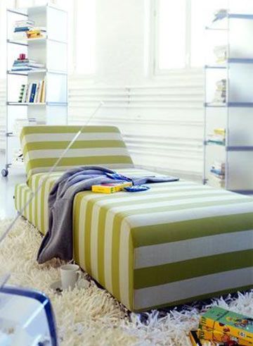 綠色具有生命力,經(jīng)常會在家居中被運用到,它的精彩,在于它能留給人們充分的遐想空間。條紋和綠色搭配在一起使用,更多的感覺是加入了一些代表著年輕、休閑的元素。