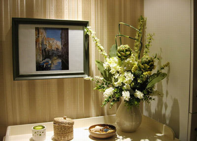 這是套案例的房子套內(nèi)面積近130平,房型不錯,空間也夠大。這是進(jìn)門的玄關(guān),給人簡潔清新的感覺。鞋柜的上方擺放一些小飾品,與墻面的繪畫相印成趣。
