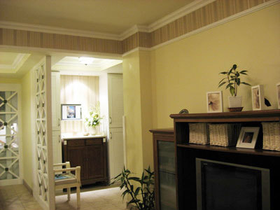 整個空間的墻面都是用淡淡的青草色,又融合米色,讓空間不至清冷,更加適合居住環(huán)境。亦符合田園的風(fēng)格。
