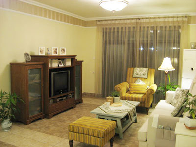 這是客廳??赡苓@個家的田園風(fēng)格,在客廳體現(xiàn)最淋漓盡致了。