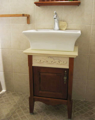 主臥衛(wèi)生間,效果立刻與從原先的現(xiàn)代田園感變成點(diǎn)點(diǎn)復(fù)古的簡歐風(fēng)格
