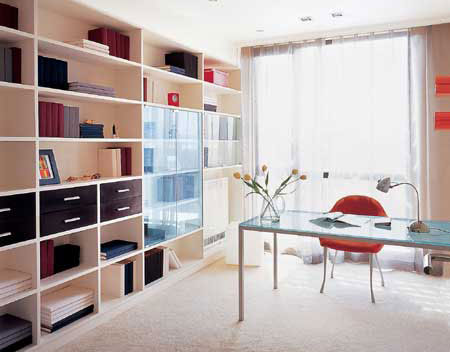 在設(shè)計新概念書房時,首先對你的藏書來個大整理。晦澀艱深的研究類,輕松消閑的娛樂類,技術(shù)應用類,感人肺腑的小說類,將所有書籍分門別類整理好,使之井然有序,方便參閱。上海裝潢網(wǎng)