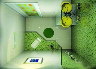 燈光是營造情調(diào)的高手,有了燈光的裝飾,空洞的衛(wèi)浴間就會生動起來。在洗面臺前、浴缸邊裝飾造型優(yōu)雅的壁燈,可以增添效果。