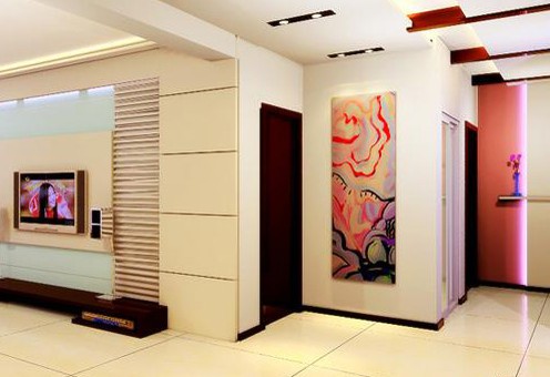 如今,借用這個概念到家庭裝飾領(lǐng)域,室內(nèi)設(shè)計師創(chuàng)造出一種嶄新的裝飾手法。如果簡 單點說,客廳的“主題墻”就是指客廳中最引人注目的一面墻,一般是放置電視、音響的那 面墻。在這面“主題墻”上,設(shè)計師采用各種手段來突出主人的個性特點。