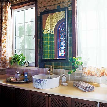 仿古式樣的長(zhǎng)形面盆上明媚的鮮花和蟲鳥圖案栩栩如生,就像在恬淡的戶外洗漱一般。 上海裝潢網(wǎng)