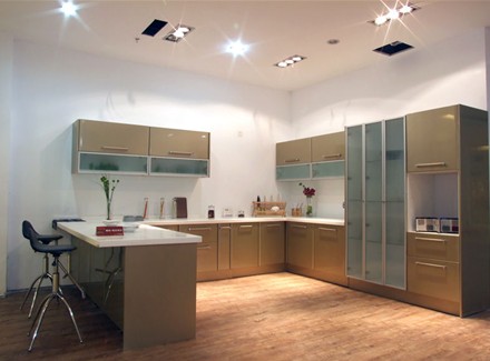 據(jù)專家介紹,選購櫥柜,首先要選擇品牌櫥柜,品牌櫥柜在板材、工藝、配置、健康和環(huán)保方面更具科學(xué)性,會根據(jù)不同地域和人文習(xí)慣采用最合適的板材,南方地區(qū)比較潮濕,市場比較暢銷的烤漆系列櫥柜采用耐磨耐刮、耐高溫、抗腐蝕和耐潮濕的烤漆板,易清潔、不含鉛/汞等有害元素,具有殺菌殺蟲、絕緣、防污、防毒、防輻射等特點。比如華帝的康乃馨系列櫥柜,采用的是烤漆面板與深色高光吸塑搭配,獨立開發(fā)的U型與半U型隱藏拉手,臺面底部LED燈、開放性廚房設(shè)計布局。采用了電動的傳動裝置,和進口上翻門重型支撐,現(xiàn)代感強。